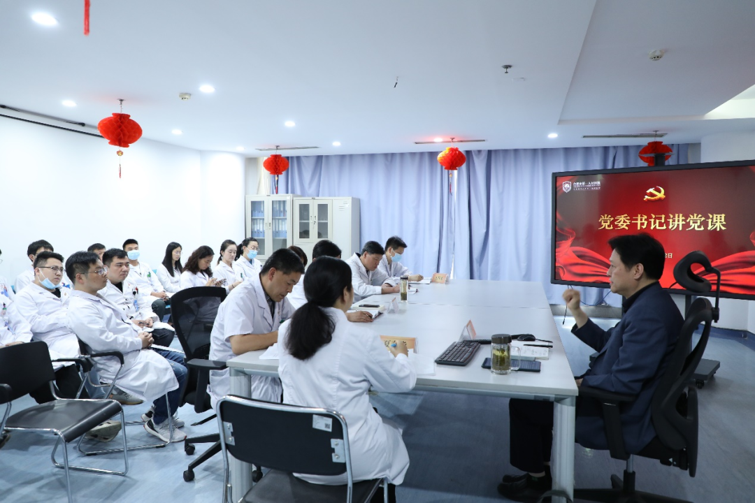 5月22日下午,党委书记吴冬雷同志在医院南区医学影像中心党支部二楼会议室为该党支部全体党员、入党积极分子及职工上党课。