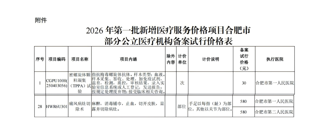 新增价格 ▏2026年度第一批批复新增医疗服务项目价格