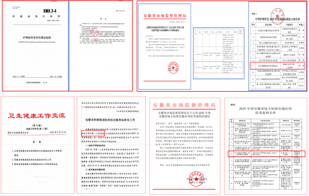 2025 年,我们牵头发布1项省地方标准,2 项标准立项;医养结合标准化工作获国家卫健委专刊交流,1 项标准案例获评安徽省优秀案例。