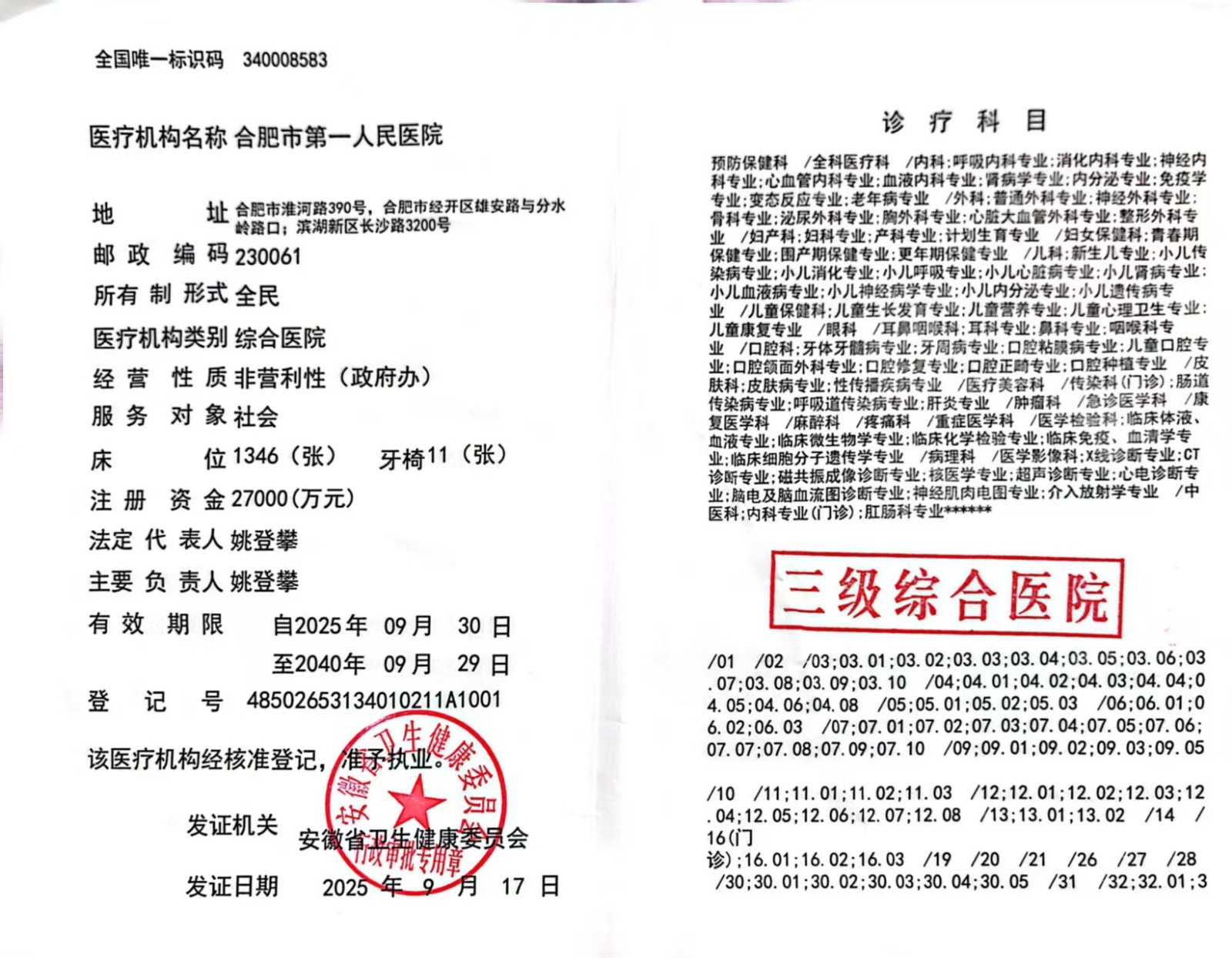 集医疗、教学、科研、保健、预防、康复、急救、健康检查、临终关怀为一体的大型三级甲等综合性医院