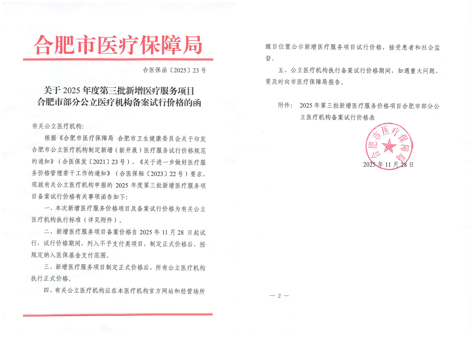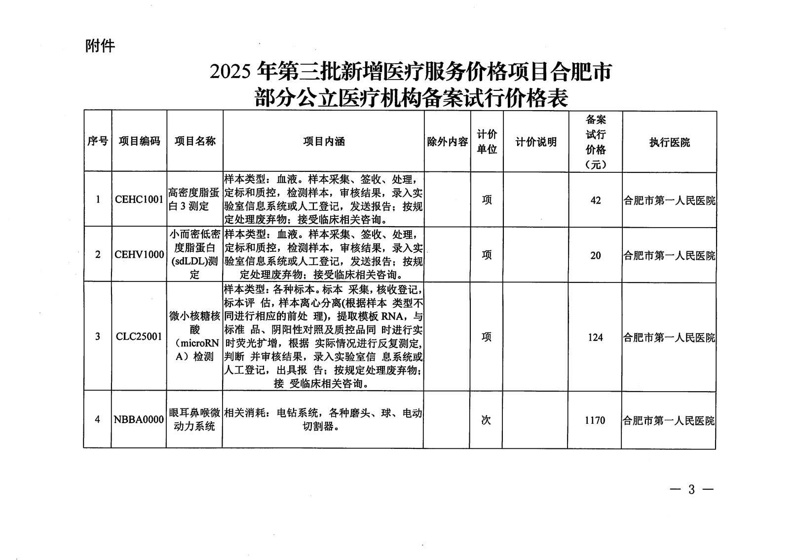 新增价格 ▏2025年度第三批批复新增医疗服务项目价格